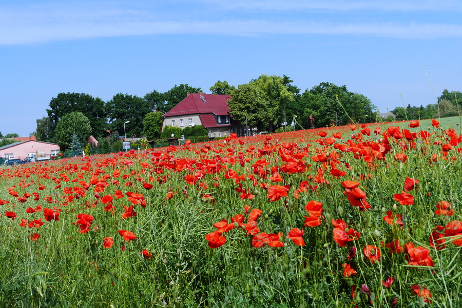 Die so herrlich von Mohn- und Kornblumen umsäumten Felder sind doch eine Augenweide.